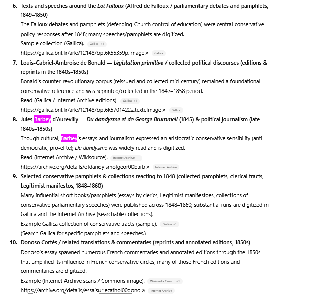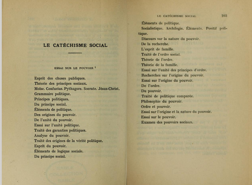 This list only ended up providing four works to use, since two are translations from Spanish, two don’t actually specify a work, one is a repeat of Bonald, and Saint-Bonnet is on there twice. So, I added: