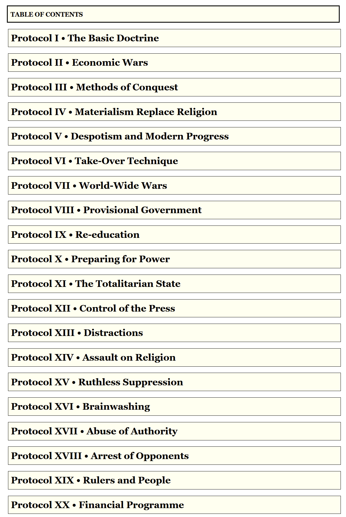 We shall raise the rate of wages which, however, will not bring any advantage to the workers, for at the same time, we shall produce a rise in prices of the first necessaries of life, alleging that it arises from the decline of agriculture and cattle breeding: we shall further undermine artfully and deeply sources of production, by accustoming the workers to anarchy and to drunkenness and side by side therewith taking all measure to extirpate from the face of the earth all the educated forces of the GOYIM.