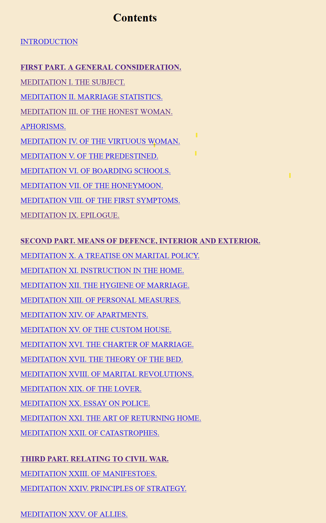 I’d be genuinely curious if anyone could find a single other work that begins like this. In comment #83 on my original article, I also noted the similarity in layout of Balzac’s Physiology of Marriage, one of his few non-fictional (mostly) works, with the Protocols.