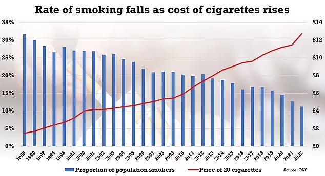 Cigarette tax doubled.